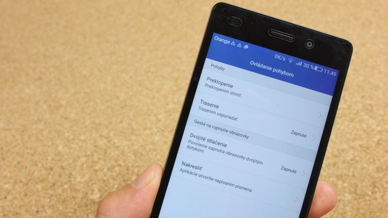 Zaujímavá je aj ponuka Ovládanie pohybom. Tu nájdeme možnosti stlmiť hovor preklopením, zobudenie obrazovky z režimu spánku dvojitým poklepaním a nakreslením gesta (písmena) na zamknutej obrazovke spustiť vybranú aplikáciu. Napríklad písmenom "C" spustíte fotoaparát aj pri zhasnutej obrazovke. je to rýchle a šikovné. V Navigačnom paneli máte na výber rôzne usporiadanie ovládacích softvérových tlačidiel, tu si zvolíte kombináciu tak, aby vám čo najviac vyhovovala.