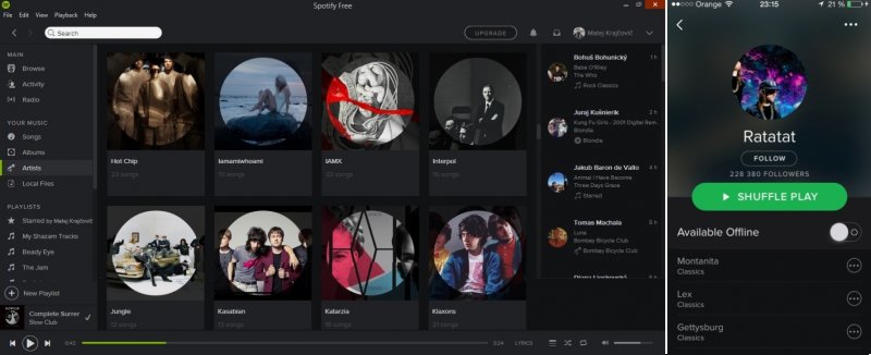 Bezplatné Spotify v súčasnosti ponúka bezplatné prehrávanie na PC prerušované reklamou a shuffle mód v každom okamihu viazaný na dátové pripojenie na mobiloch. Za rovnaký mesačný poplatok (5,99 eur) už bude všetko fungovať bez prerušenia a vopred uložená hudba aj offline.