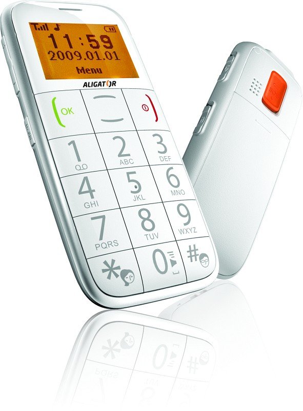 Špecialitou je možnosť priradiť až 5 čísel k mechanickému SOS tlačidlu na zadnej strane mobilu. Po aktivovaní tlačidla sa spustí hlasný alarm, odošlú sa SMS správy na dané čísla a nakoniec Aligator A500 uskutoční aj volania vybraným kontaktom. Funkciu je možné okamžite deaktivovať posunutím tlačidla nahor. Alarm stíchne a zastaví sa aj odosielanie SMS či vytáčanie kontaktov. To na A300-ke nebolo možné. Keď ste SOS tlačidlo raz podržali, už ste odoslaniu správ a telefonátom nezabránili. Telefonovanie s Aligatorom by nemalo robiť problém ani ľuďom so slabším sluchom. Telefón má hlasný reproduktor. Počas hovoru môžete aktivovať hlasité handsfree.