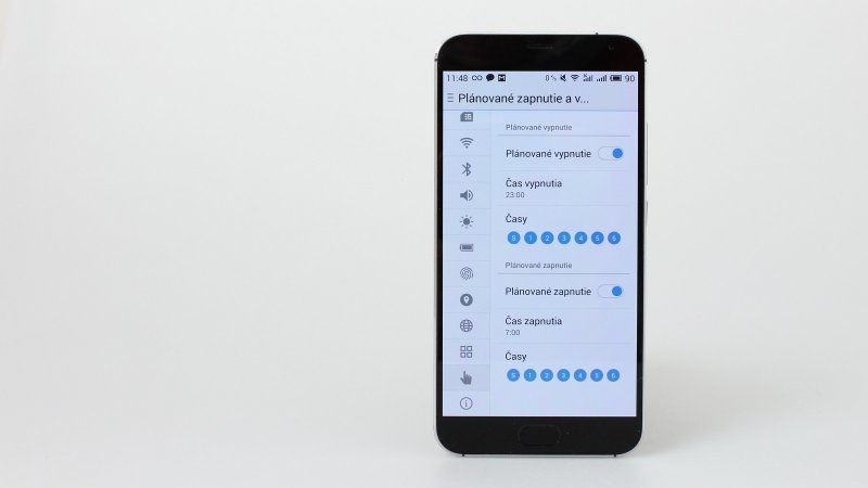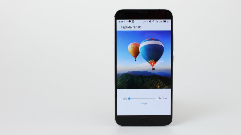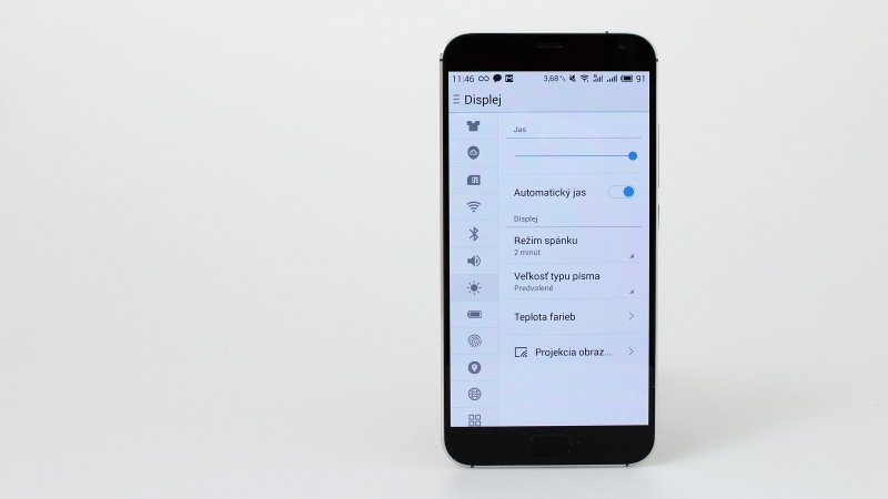 Prednú stenu musím pochváliť za minimálne okraje po stranách displeja. Ten má uhlopriečku 5,5 palca, na ktorej ponúkne komfortné Full HD rozlíšenie. QHD by pri danej cene bol ozajstný luxus, ktorý by ešte viac zaklincoval drahšiu konkurenciu. Full HD bohato stačí. Meizu sa v MX5 rozhodlo pre AMOLED displej a ja tento krok chválim. Pri zobrazení bielej si všímam trochu mierne šedý nádych, ale krásne ostatné farby na čele s vernou čiernou to hravo vykompenzujú. Bielu som nastavil viac do chladna. Túto možnosť nájdete v nastaveniach, v položke Teplota farieb. Tu som si aktivoval aj automatickú reguláciu jasu, na ktorú v smartfónoch nedám dopustiť, režim spánku nastavil na dve minúty a bolo vybavené. Viac možností pri nastavení displeja ani nenájdete. Čitateľnosť na slnku bola dobrá a pri AMOLED displeji sa môžete spoľahnúť aj na dobré pozorovacie uhly. Povrch displeja chráni ochranné sklíčko Gorilla Glass 3 a ani po dvoch týždňoch intenzívneho používania nesklamalo.