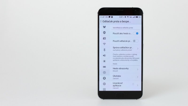 Rozpoznanie bolo v drvivej väčšine prípadov rýchle a presné, menšie problémy jej robili iba spotené prsty, palce. To je ale pochopiteľné. Okrem pohotových reakcií treba rozhodne vyzdvihnúť aj možnosť priloženia prsta v ľubovoľnom smere, teda tak ako to ponúkajú najnovšie modely od Samsungu a iPhony. Postup zadávania odtlačkov je podobný ako u ostatných značiek. Palec je potrebné priložiť viackrát a pod rôznym uhlom. V správcovi odtlačkov sa môžu nachádzať maximálne štyri odtlačky. Ja som sa rozhodol pre palec a ukazovák na oboch rukách. Následne som si v možnostiach zablokovania obrazovky zvolil možnosť odblokovania pomocou odtlačkov. Po stlačení tlačidlá a zlomku sekundy podržania na ňom je telefón hneď odblokovaný. Okrem odblokovania môžete vaše odtlačky použiť aj na odomykanie zašifrovaných súborov alebo aplikácií. Čítačku odtlačkov som si obľúbil a počas celej doby používania som ju používal na odblokovanie telefónu. Páči sa mi aj rozumné osadenie do tlačidla pod displejom. Čítačkám na zadnej stene akosi neviem prísť na chuť, keďže pri položení telefónu na stôl sa stávajú ťažšie dostupné.