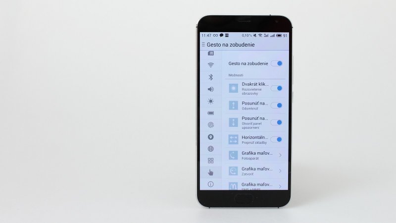 Telefón zapínam pomocou dobre dostupného tlačidla v pravej bočnej stene. U predchodcu bolo umiestnené hore, čo je z pohľadu komfortu o čosi horšie miesto. Pri smartfónoch Meizu však umiestnenie tlačidla neriešim. Jeho funkciu hravo nahradia gesta, a tých je tu neúrekom. Vrátim sa k ním trochu neskôr. V pravej stene ešte nájdeme tlačidlo ovládania hlasitosti, ktorému opäť chýba možnosť regulovania hlasitosti zvonenia. Tú musíte zmeniť až v nastaveniach.