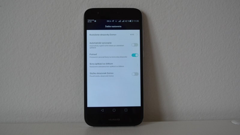 Ikony môžete mať rozložené do mriežky 4 x 4 alebo 4 x 5, v nastaveniach môžete povoliť automatické vyrovnanie ikon po odstránení aplikácie, zarovnanie ikon potrasením telefónu a podobne.