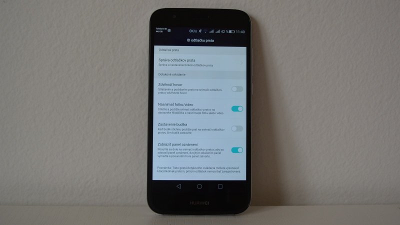 Pod objektívom fotoaparátu je umiestnený viacfunkčný snímač odtlačkov prstov, rovnaký ako pri Honor 7. Len rozpoznávanie mojich prstov bolo tentoraz oveľa stabilnejšie. Len párkrát sa mi stalo, že som musela prst prikladať opakovane. Umiestnenie čítačky mi vyhovuje, je presne na tom mieste, kam mi pri uchopení telefónu padne ukazovák. Nadefinovať si môžete maximálne päť odtlačkov.