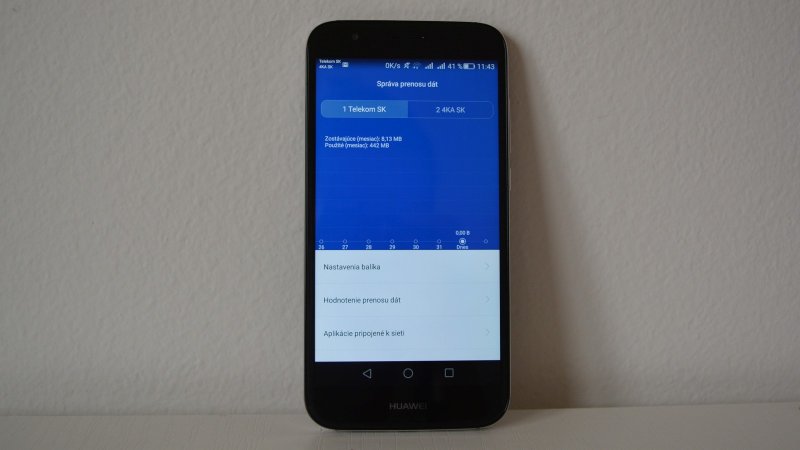 Keďže sme v redakcii zatiaľ netestovali model G8, voľba bola celkom jasná. Nielen, že má fotoaparát s optickou stabilizáciou, ale používateľské prostredie Huawei ponúka podrobné nastavenia používania mobilných dát a jednoduchú kontrolu. Rovno v notifikačnej lište som mala oznámenie o využitých dátach za aktuálny deň, mesiac, a koľko mi ich ešte zostáva. Na vypočítané hodnoty som sa mohla spoľahnúť, boli zhodné s kontrolou spotreby cez operátora.