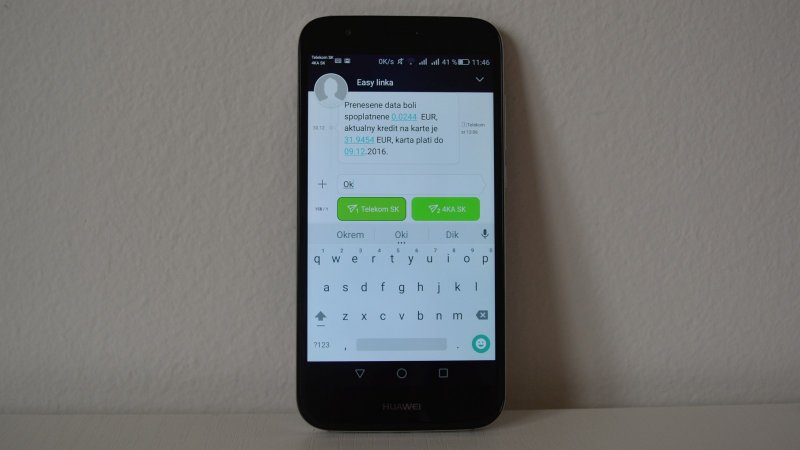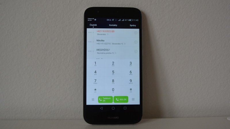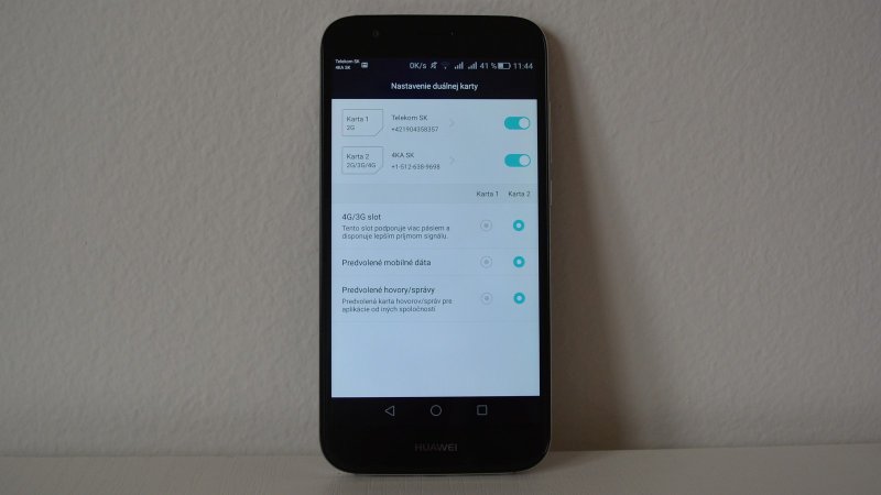 V správcovi SIM kariet si nastavíte, ktorý slot budete využívať na dáta (každý podporuje aj 4G siete). Druhá karta potom pracuje len v 2G sieti. Bohužiaľ nejde o aktívny dual SIM, takže keď prebieha hovor na jednej karte a niekto vám v rovnakom čase volá na druhú kartu, hláška mu oznámi, že volané číslo je momentálne nedostupné. V tomto má Honor 7 navrch. V zozname hovorov jasne vidíte, z ktorej alebo na ktorú SIM kartu bol hovor uskutočnený, v SMS správach to zistíte až vtedy, keď si správu rozkliknete. S kvalitou hovoru nebol problém, nesťažovala si ani druhá strana.