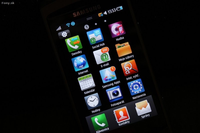 Nový operačný systém neprináša nič prevratné, Bada s nadstavbou TouchWiz 3.0 mi pripomína akýsi hybrid iPhone OS a Androidu. O tom však až o pár riadkov ďalej. Začnem odomykaním displeja. Ten je možné aktivovať dlhším podržaním hardvérového tlačidla na boku telefónu, prípadne odsunutím do strán akéhosi tieňového obdĺžnika na displeji. Po odomknutí na vás čakajú tri
