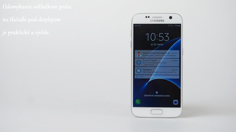 Pod displejom nechýba známe hardvérové tlačidlo, ktoré aj teraz ukrýva snímač odtlačkov prstov. Ten reaguje rýchlo (aj keď rýchlosti na iPhone sa nevyrovná) a nemal problém ani s rozpoznávaním odtlačkov, len nesmiete mať vlhké prsty. Čo mi trošku prekážalo, telefón s displejom v režime Always on odblokuje až po stlačení tlačidla, zo zamknutej obrazovky. Niekedy som sa zabudla a priložila prst na snímač v tomto režime a čudovala sa, prečo sa telefón neodblokoval. Musela som stlačiť stredové tlačidlo, objavila sa klasická zamknutá obrazovka a až vtedy snímač zareagoval.
