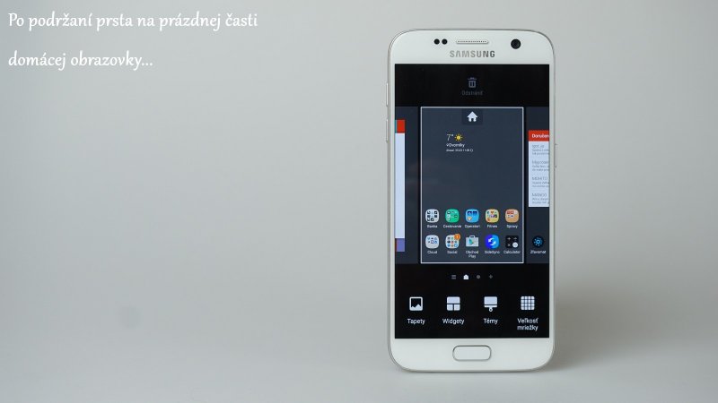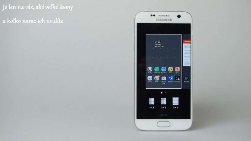 Podržaním prsta na domácej obrazovke sa zobrazí ponuka s úpravou tapety, widgetov, tém a veľkosti mriežky. Tá môže byť 4 x 4, 4 x 5 alebo 5 x 5 ikon. Takisto si tu zvolíte, ktorá obrazovka bude hlavná, prípadne si pridáte ďalšiu. Nájdete tu aj možnosť vypnúť si doplnkovú obrazovku Briefing, čo je niečo podobné ako BlinkFeed u HTC. No tu nemáte v ponuke slovenské weby a možnosti úprav zobrazovaného obsahu sú chabé. K tejto obrazovke sa dostanete potiahnutí prsta po domácej obrazovke zľava doprava.