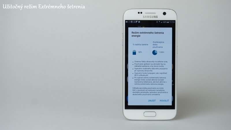 Párkrát som preto radšej využila šetriaci režim, aj extrémne šetrenie batérie, ktoré obmedzí funkcie telefónu na minimum a obrazovka bude zobrazená len v odtieňoch sivej. Výdrž sa od pôvodne odhadovanej predĺži približne na dvojnásobok, no vtedy som bola ako keby "odrezaná od sveta". A to mi skrátka nevyhovuje. Čo som však počula a čítala, S6 na tom bola ešte horšie, takže som vlastne mohla byť spokojná. Obyčajný režim šetrenia predĺžil výdrž len o jednu hodinu, čo je podľa mňa málo. Takže buď noste pri sebe externý zdroj, alebo v prípade núdze použite režim extrémneho šetrenia. Alebo možno budete používať telefón striedmejším spôsobom než ja a v pohode vydržíte celý deň.