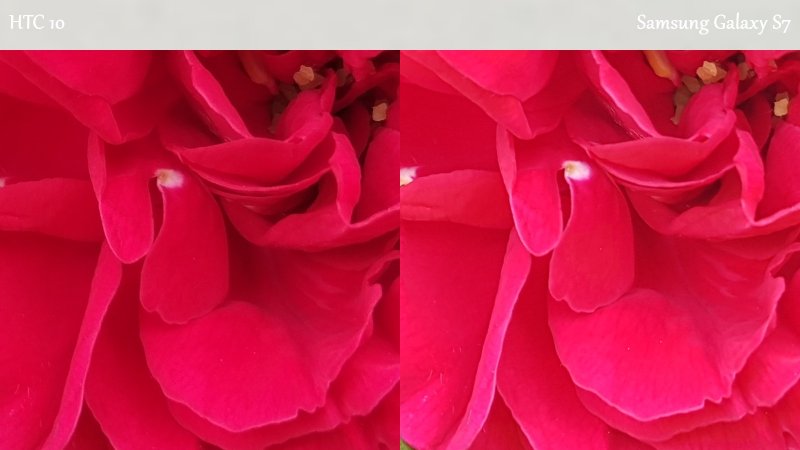 Na záznam videa musíte na HTC 10 najprv prepnúť, Samsung nahrávanie spustí hneď po stlačení spúšte. HTC má 4K video obmedzené len na 6 minút, Samsung ho dokáže nahrávať dlhšie. A navyše ponúka aj záznam Full HD so 60 snímkami za sekundu, čo HTC chýba. A to je veľká škoda. Samsung dokáže vytvárať aj vertikálnu panorámu (na výšku), HTC nie. Samsung vynikal aj manuálnym režimom s dĺžkou expozície 1/24000 - 10 sekúnd, HTC ju ale po jednej z aktualizácií predĺžilo na 1/8000 - 16 s.