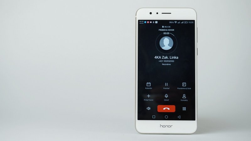 Telefón prekvapil aktívnym dual SIM režimom. Keď na jednom z čísel prebieha hovor a niekto sa vám snaží dovolať na druhú kartu, počujete v uchu jemné klopanie, môžete prvý hovor podržať, prijať nový prichádzajúci a neskôr sa vrátiť k prvému hovoru. Pokiaľ sa nechcete nechať pri hovore rušiť, nájdete si oznámenie o zmeškanom hovore aj s dĺžkou vyzváňania. Za toto si Honor 8 zaslúži pochvalu.