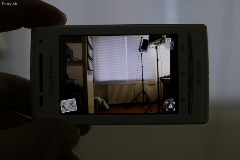 s rozlíšením 320 x 480 bodov a uhlopriečkou 3 palce. Detaily a písmo sú oproti modelu X10 mini výrazne jemnejšie a krajšie, no displej sa nám zdal vyblednutejší. Reakcie na dotyk sú rýchle, rovnako ako rýchlosť systému. Kritiku si displej zaslúži za slabšiu viditeľnosť na priamom slnku. Nastavenia umožňujú meniť jas, ten dokáže telefón riadiť vďaka senzoru aj sám. Operačný systém použitý v Xperii X8 je Android 1.6 Donut upravený Sony Ericssonom. Novinka sa zatiaľ updatu na novší OS nedočkala, na internete už však kolujú informácie o možnej aktualizácii v decembri 2010. Sklamaním je nemožnosť umiestniť si viacero widgetov na jednu domácu obrazovku. Po pridaní nového widgetu (hoci by sa rozmerovo zmestili) sa vytvorí nová obrazovka. Menu je taktiež rovnaké, pribudol iba jeden riadok ikon. Sony Ericsson Xperia X8, rovnako ako modely X10 mini a X10, funguje aj bez vloženej SIM karty.Prezeranie obrázkov a videí zabezpečuje aplikácia Album. Mediascape známa z pôvodnej Xperii X10 chýba. Galéria snímky triedi podľa dátumu a zobrazuje v miniatúrach. Automatické otáčanie obrazovky zabezpečuje akcelerometer. Prezeranie snímok je plynulé. Na multitouch zoom zabudnite, približovanie funguje, rovnako ako na Xperii X10 mini, dvojitým poklopaním po displeji.