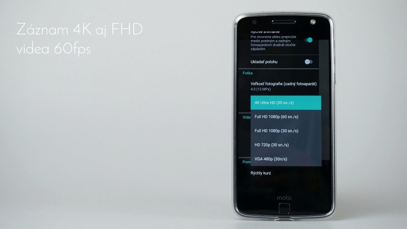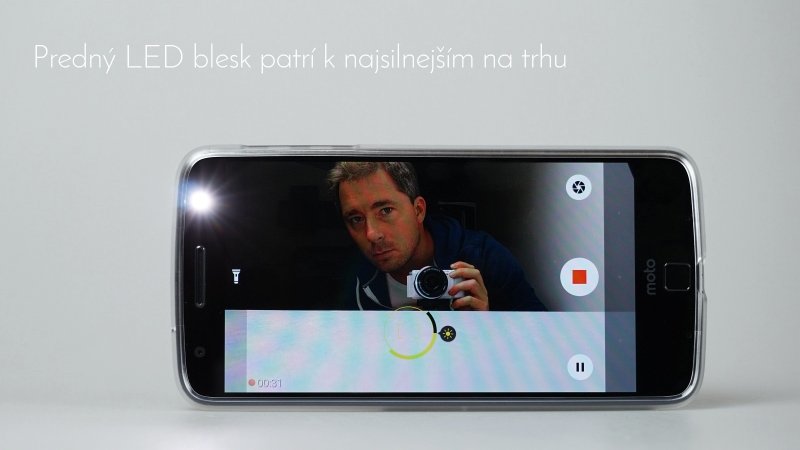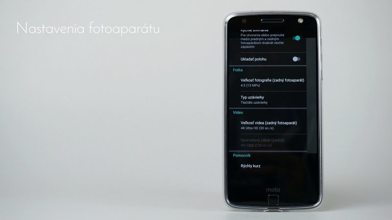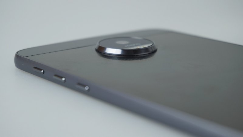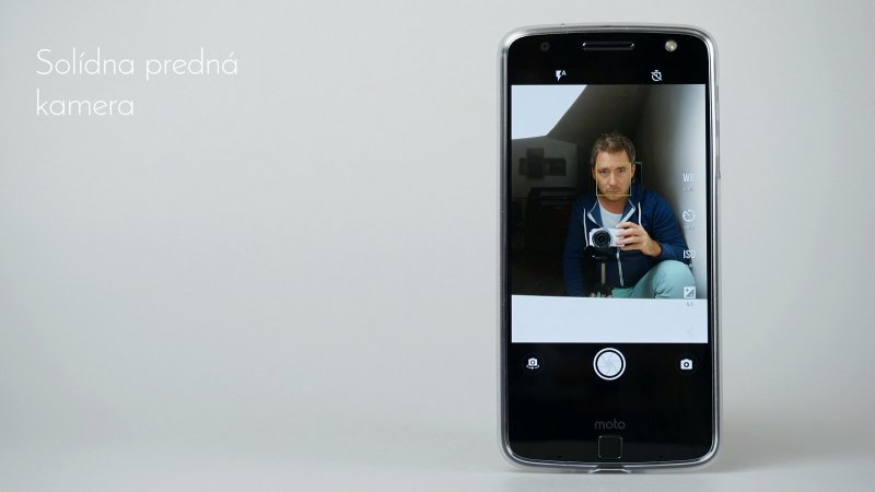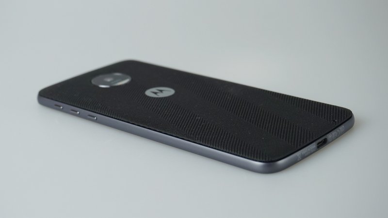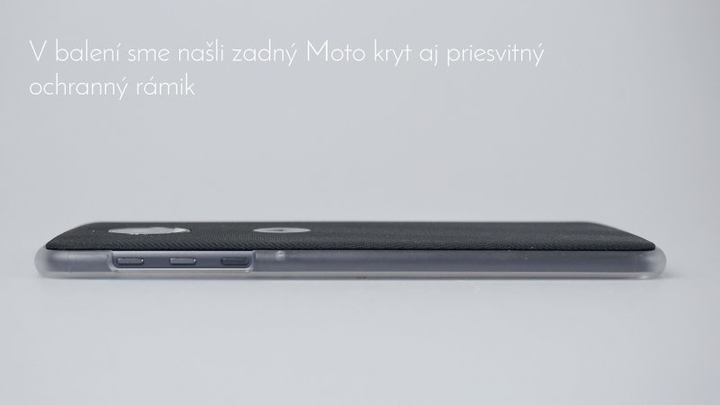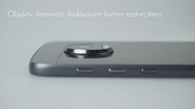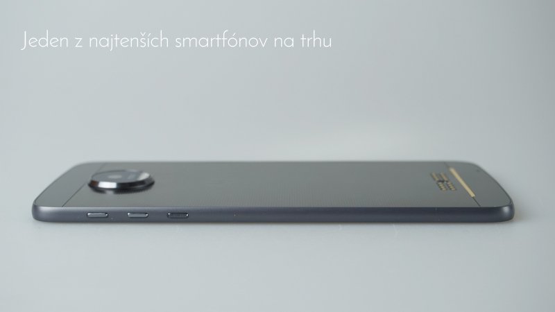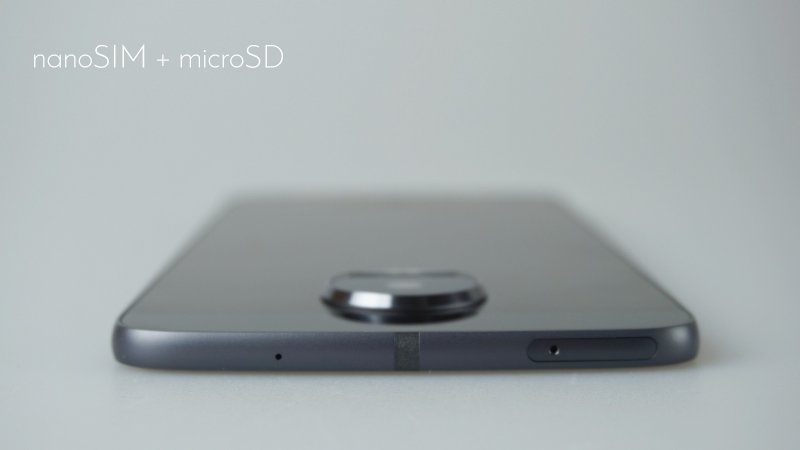 Slot na SIM kartu ukrýva aj miesto pre microSD kartu, dual SIM tu tentoraz nenájdete. Hore sa ešte nachádza sekundárny mikrofón. Ďalší mikrofón je na zadnej strane vpravo dole. V dolnej časti tiež nájdeme magnetické konektory na pripojenie Moto Mods. Hlavný fotoaparát je umiestnený na zadnej strane v hornej časti uprostred a z tela vystupuje až 2 mm. Predná strana telefónu je pokrytá sklom, ktoré je mierne zaoblené na krajoch, no nenazval by som to 2,5D.