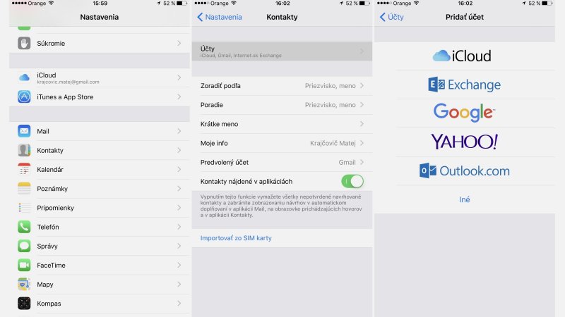 Pokiaľ teda v Nastaveniach vyberiete položku Kontakty -> Účty -> Pridať účet, namiesto iCloudu, Exchange, Yahoo či Outlook.com vyberte Google. Tu zadajte svoje prihlasovacie údaje, ktoré ste používali aj na Androide.