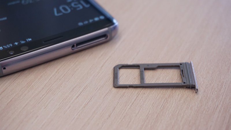 Šuplík so slotmi pre nanoSIM a microSD kartu sa nachádza v hornej stene. Radi by sme tu videli aj infračervený port, no ten obom novinkám chýba. Malé poďakovanie patrí Samsungu za zachovanie audio konektora, ktorý nájdete v spodnej stene.