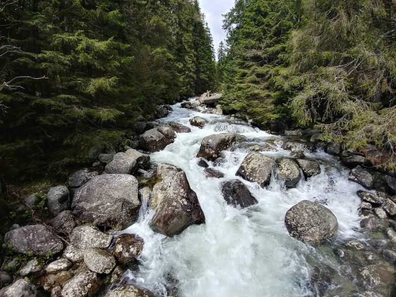 Širokouhlé fotografie aj videá sú skutočne pôsobivé. Lepšie výsledky som dosahoval v manuálnom režime, ale aj automatika je fajn. Manuál potešil lepším vyvážením bielej farby alebo možnosťou nastaviť dlhší expozičný čas, ktorý som ocenil pri tzv. spomalení vody v potoku. Samozrejme, len v tieni stromov, no aj tu sa ukázala výhoda clony f/2.4 oproti f/1.8 na základnom objektíve. Tá by totiž vyžadovala kratší čas a spôsobila menšiu hĺbku ostrosti. Snímka rozmazaného potoka tak vznikla pri clone f/2.4 s ISO 50 a expozičným časom 1/10 s. V EXIFe vidím ešte aj nadmorskú výšku 1189 m n. m. Milé.