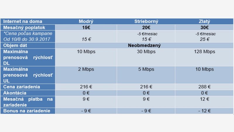 Ak si zákazníci aktivujú do konca septembra Strieborný alebo Zlatý variant, môžu navyše získať zľavu vo výške 5 eur. Strieborný internet na doma tak môžu využívať mesačne za 15 eur a Zlatý len za 25 eur mesačne.