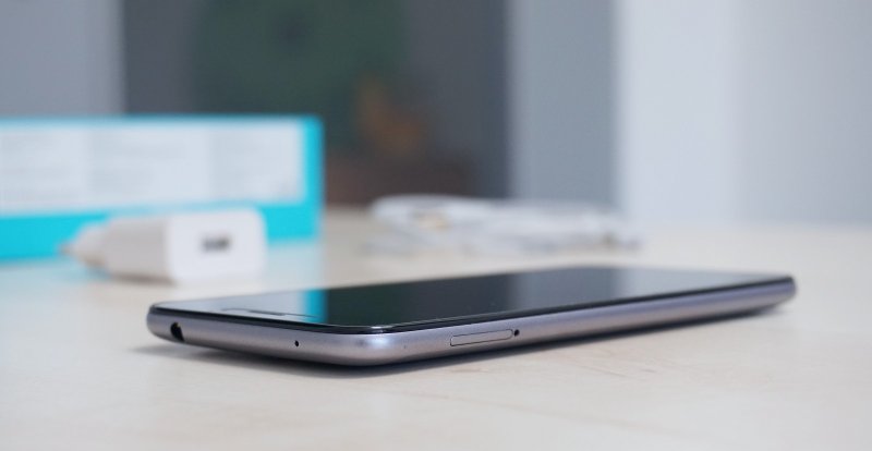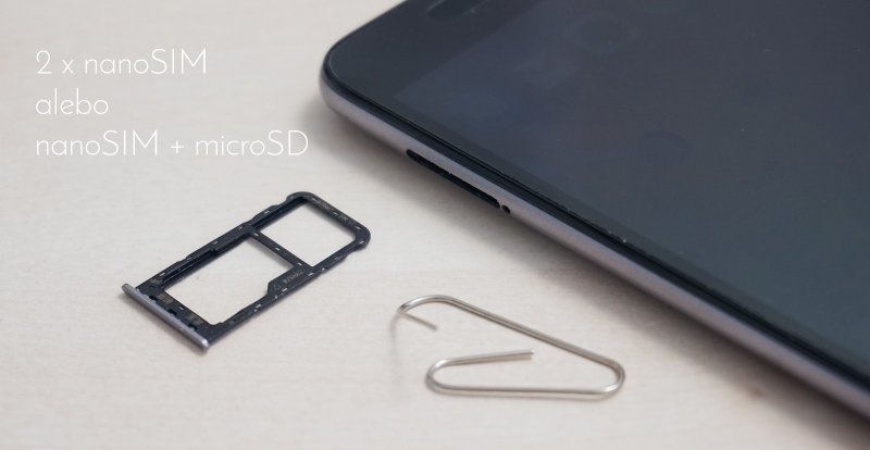 V ľavej stene nájdeme šuplík so slotom pre nano SIM kartu a druhým hybridným slotom pre druhú nanoSIM kartu alebo pamäťovú kartu. Ak sa rozhodnete používať telefón v režime dual SIM, budete si musieť vystačiť s 16 GB internou pamäťou, z ktorej je pre používateľných dostupných 8,22 GB.