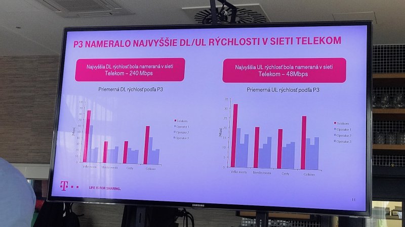 Test meral i kvalitu dátových služieb. P3 nameralo najvyššie rýchlosti sťahovania práve v Telekome. Až 240 Mbps pri downloade a 48 Mbps pri uploade. Miestami magentový operátor prekonáva konkurenciu až štvornásobne.