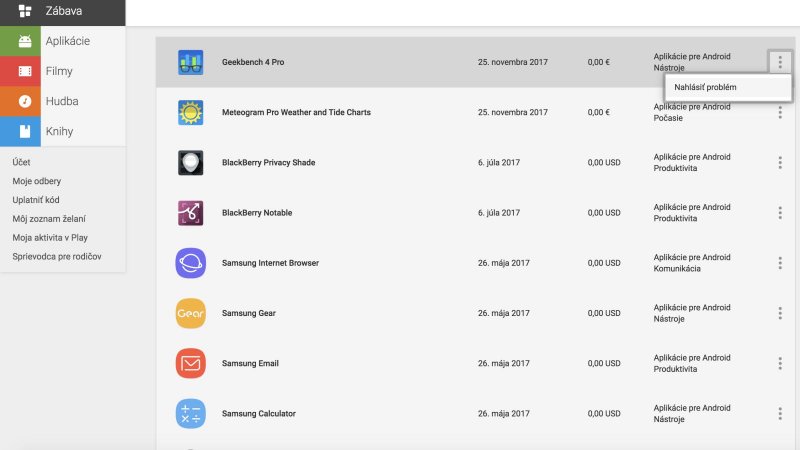Do dvoch dní môžete v prehliadači otvoriť adresu play.google.com/store/account a podobným spôsobom kliknúť na tlačidlo Nahlásiť problém ukryté za troma bodkami.