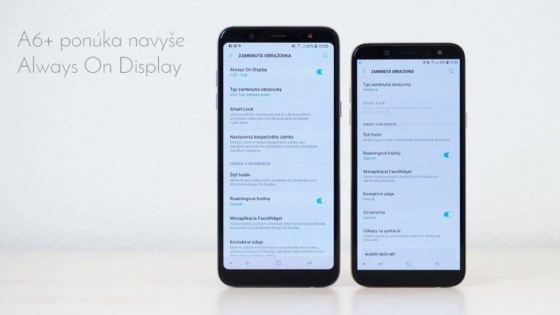 Podobne ako vo väčšom Galaxy A6+, aj tu je použitý Super AMOLED displej. Nerozumiem teda tomu, prečo sme sa už nedočkali návykovej funkcie Always On zobrazujúcej aktuálny čas a zmeškané notifikácie aj na zhasnutej obrazovke.
