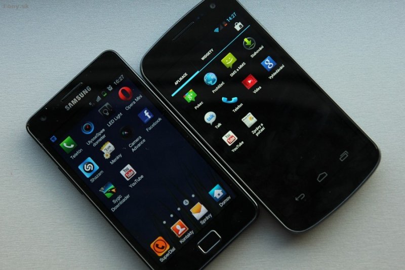 Rozdiel v domácej obrazovke, správe spustených aplikácií a nastaveniach Galaxy S II a Galaxy Nexus.