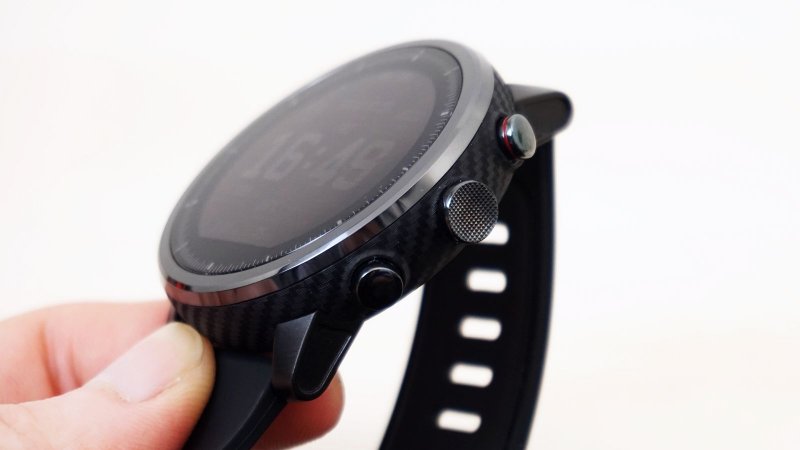 Kým prvé AmazFity mali horný keramický okraj oblý, Startos má ostrú skosenú hranu. Zvyšok tela je tiež z nového materiálu imitujúceho karbónové vlákna. Pôsobí to veľmi efektne. Prekvapením je hladký materiál, na koži neškrabe. Bál som sa, či nebude spôsobovať odieranie alebo iné problémy, našťastie nič také sa nedeje. Telo je pevné a pôsobí odolne.