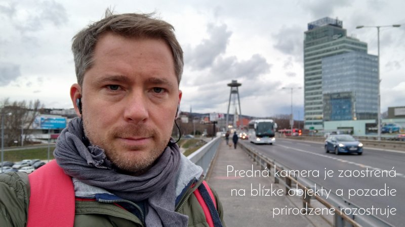 Predná kamera je zaostrená na veľmi blízke objekty. Už po natiahnutí ruky budete trochu rozostrení. Takto zaostrené zábery či videá sú však pôsobivé a ľuďom sa budú páčiť.