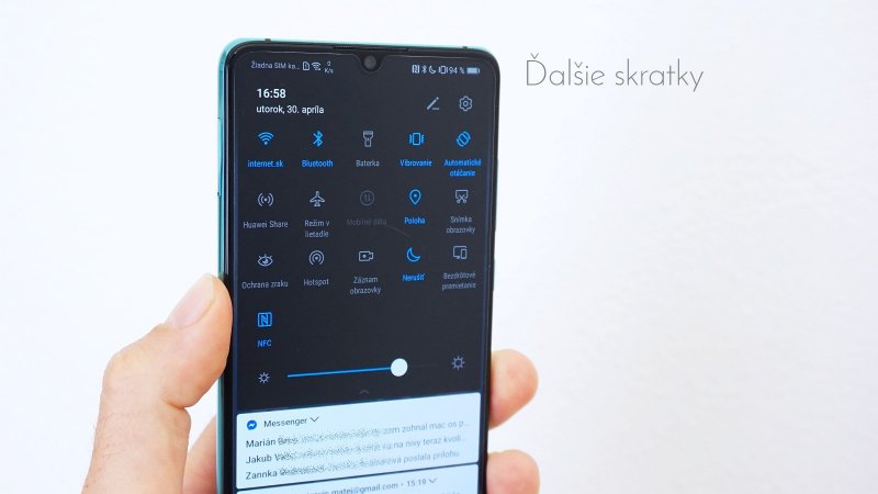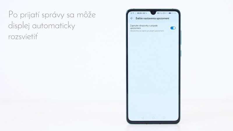 Veľkou zmenou je presedlanie na OLED displej, takže Huawei P30 už môže ponúknuť tzv. Always on obrazovku (nazvanú v nastaveniach ako Displej vždy zapnutý). Môže svietiť stále alebo v určenom časovom rozvrhu (napr. od 7-22 hod). Vďaka nemu sa pri letmom pohľade na telefón dozviete aktuálny čas, dátum a to, či máte zmeškané notifikácie. Ak vám sú iba ikony málo, zapnite si ešte možnosť rozsvietenia celého displeja po príchode upozornenia.