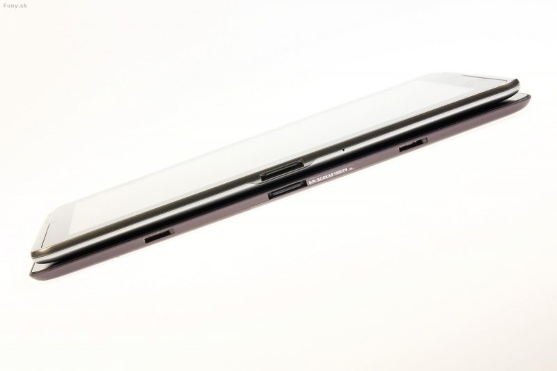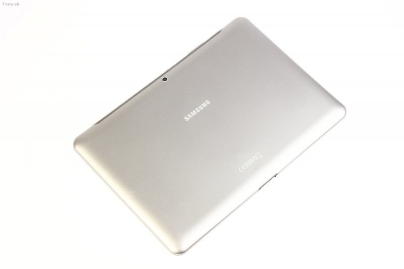 V hornej stene pribudlo k tlačidlu napájania, ovládania hlasitosti, 3,5 mm audio konektoru a slotu na SIM kartu aj jedno prekvapenie v podobe slotu na microSD kartu. Vďaka nemu si môžete úložný priestor zväčšiť až o 32 GB. V spodnej stene sa nachádza mikrofón a konektor na nabíjanie a pripojenie k PC. O nabíjanie sa stará dvojampérová nabíjačka v balení, cez USB v notebooku tablet nenabijete. Zmeny nájdeme aj na zadnej stene. V Samsungu si zrejme povedali, že ak niečo pridáme (microSD slot), tak niečo treba odobrať. Výsledkom je fotoaparát ochudobnený o LED blesk. Žeby málo miesta na zadnej stene?