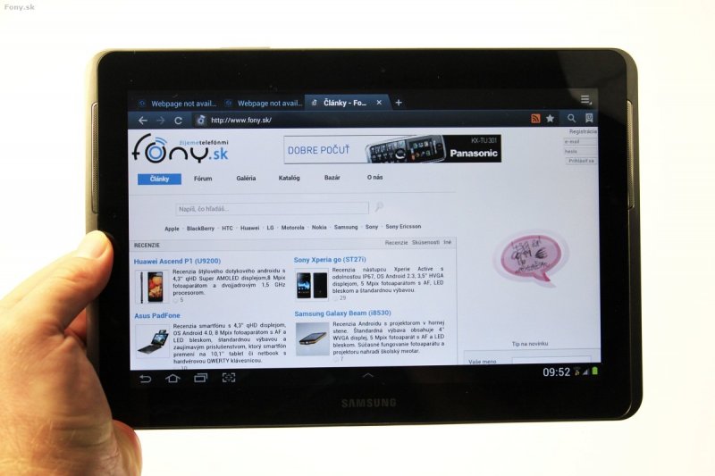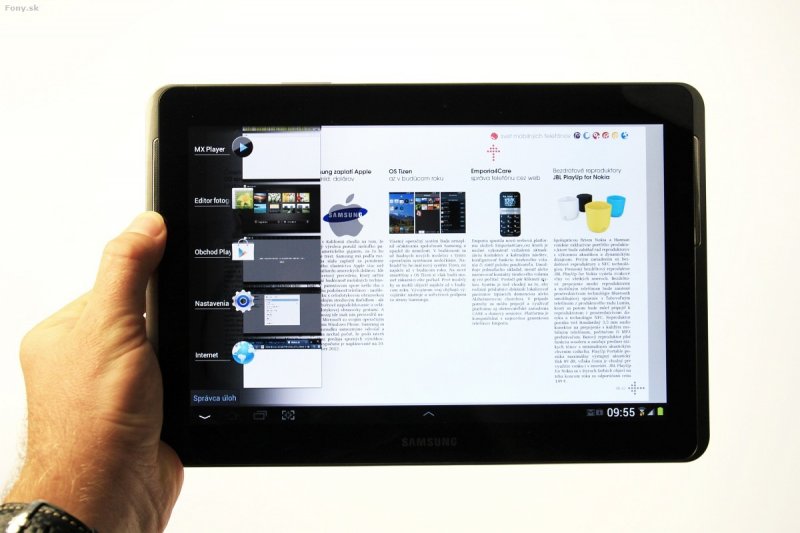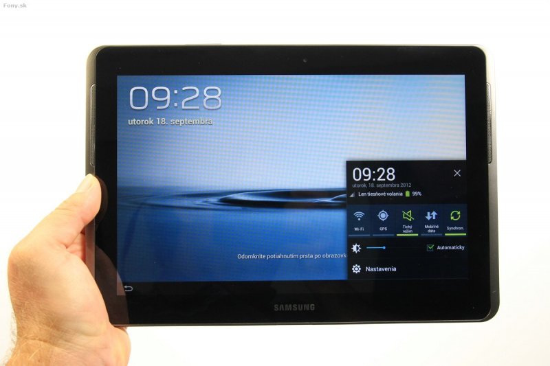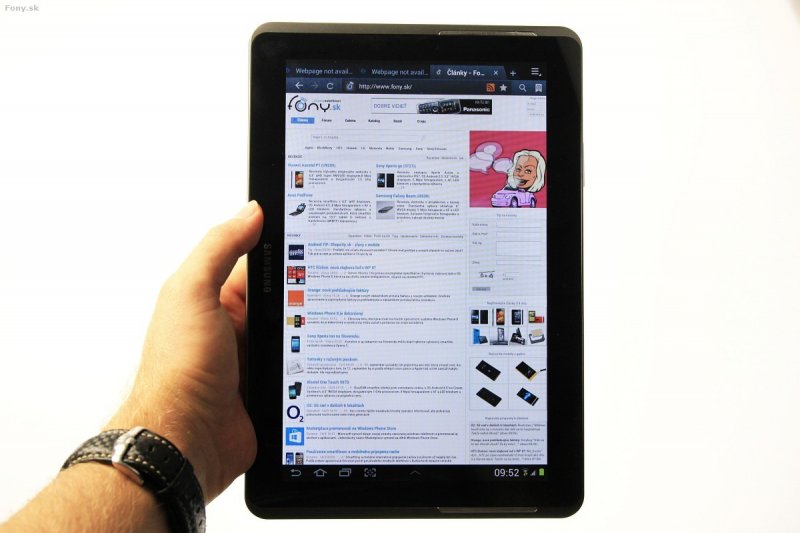 Displej s uhlopriečkou 10,1-palca ponúka rovnaké rozlíšenie ako predchodca – 1 280 x 800 b. Nie je to Full HD a ani 2 048 x 1 536 b., ktoré nájdeme v novom iPade, no myslím, že bohato postačí. Čo sa však zmenilo je použitá technológia. Klasické TFT-čko bolo nahradené IPS panelom, ktorý ma za úlohu zlepšiť pozorovacie uhly. A s tými som bol spokojný. O automatickú zmenu jasu sa stará senzor umiestnený nad displejom. Túto funkciu som ale príliš nevyužíval, keďže som si vystačil s dvomi úrovňami. V interiéri som mal jas nastavený na 50% a v exteriéri to nešlo inak než na 100%. A ani tak to nebolo príliš pohodlné používanie. Značný vplyv na to mali aj odtlačky prstov po celom displeji. O ochranu veľkej plochy pred škrabancami sa stará sklíčko Gorilla Glass.