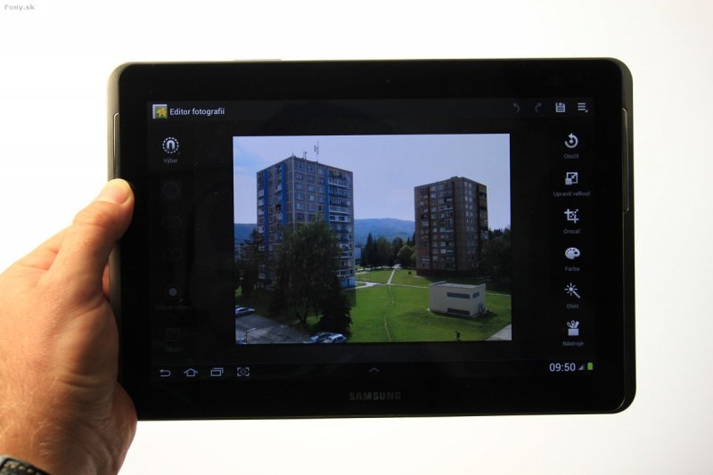 Fotoaparát na zadnej stene je bez blesku a chýba mu aj automatické zaostrovanie. V tomto prípade je to skôr povinný doplnok výbavy ako funkčný prvok. Prekvapenie ale čaká vpredu. V smartfónoch sa kladie vysoký dôraz na fotoaparáty v zadnej stene a v tablete by to malo byť naopak. Ich význam vidím najmä pri videohovoroch. A v prípade Galaxy Tab 2 sme sa dočkali zaujímavej zmeny. Oproti predchodcovi sa rozlíšenie prednej kamery znížilo z dvoch megapixlov na zastarané VGA (0,3 Mpix). Tak tomuto kroku vážne nerozumiem.