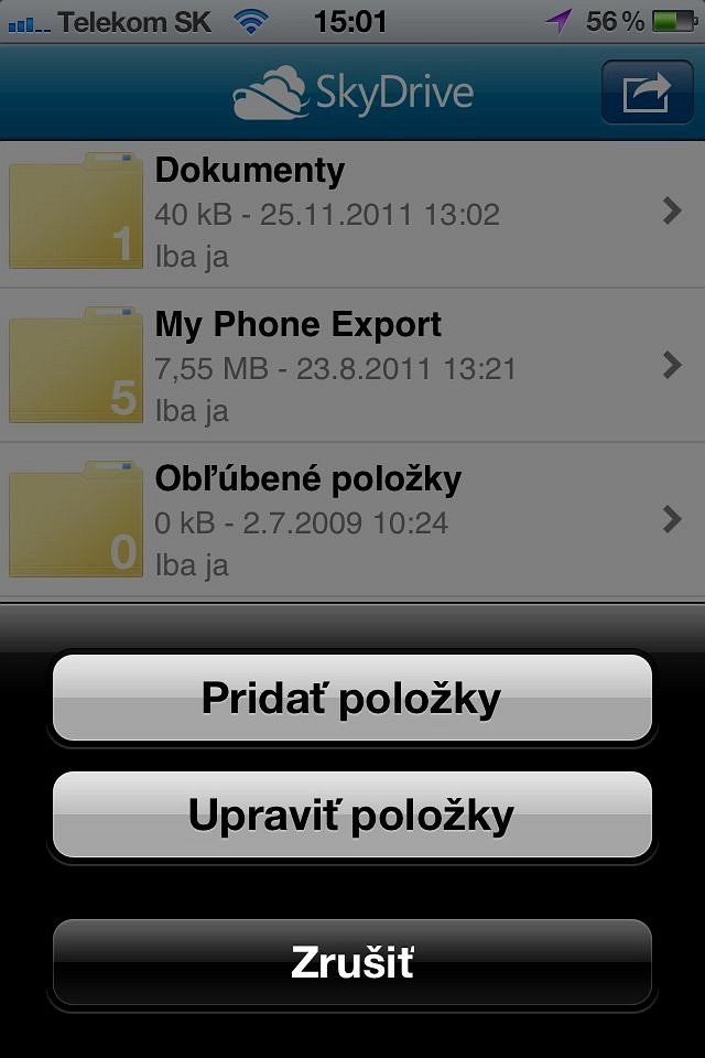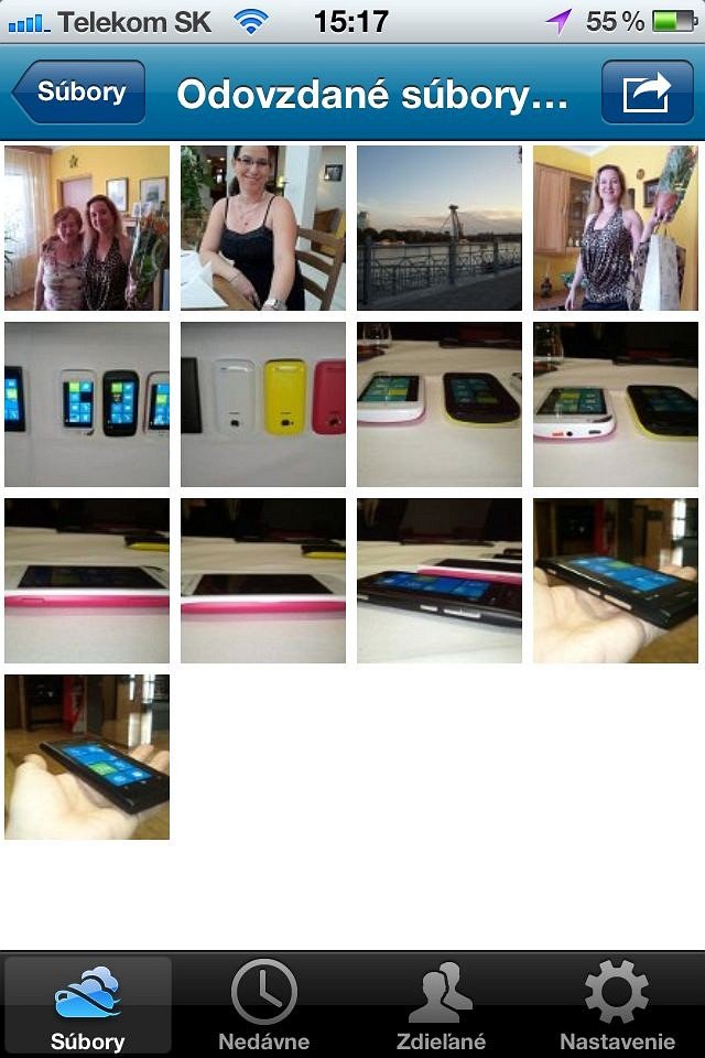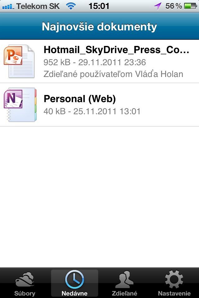S mobilnou aplikáciou získate prístup k obsahu služby SkyDrive vrátane zdieľaných súborov, zobrazíte si nedávno použité dokumenty, nahráte svoje fotografie do cloudu a môžete svoje súbory spravovať, premiestňovať, mazať či vytvárať nové zložky.