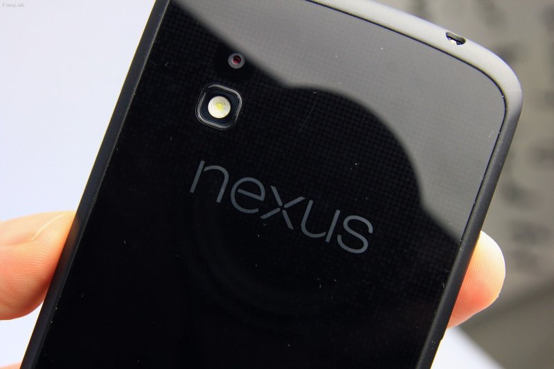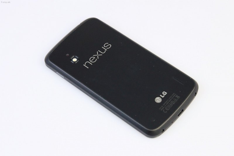 Na zadnej stene prekvapil spôsob osadenia fotoaparátu a LED blesku. Blesk je netradične ohraničený štvorcovým lemom, na ktorý sme si zvykli práve pri fotoaparáte a fotoaparát iba splýva so zadnou časťou. Výhodou je ľahké čistenie objektívu, nevýhodou bude väčšia náchylnosť na odtlačky. Pod ním sa nachádza nápis nexus, ktorý určite neostane nepovšimnutý a v spodnej časti ešte logo výrobcu, ktorý to všetko spáchal, teda LG. Zmena v porovnaní s modelom Galaxy Nexus nastala pri type konštrukcie a tentokrát ide o jeden celok. Výmena batérie si tak vyžiada návštevu servisu. Všetky nutné označenia, kódy a ikony, ktorým aj tak pomaly nikto nerozumie sa museli umiestniť pod logo výrobcu. Obsah zadnej steny uzatvára hlasný reproduktor. Dobrej kvalite reprodukcie sa vyhýba na míle a na prehrávanie hudby som používal výlučne slúchadlá. Reproduktor v Nexuse 4 je naozaj sklamaním.