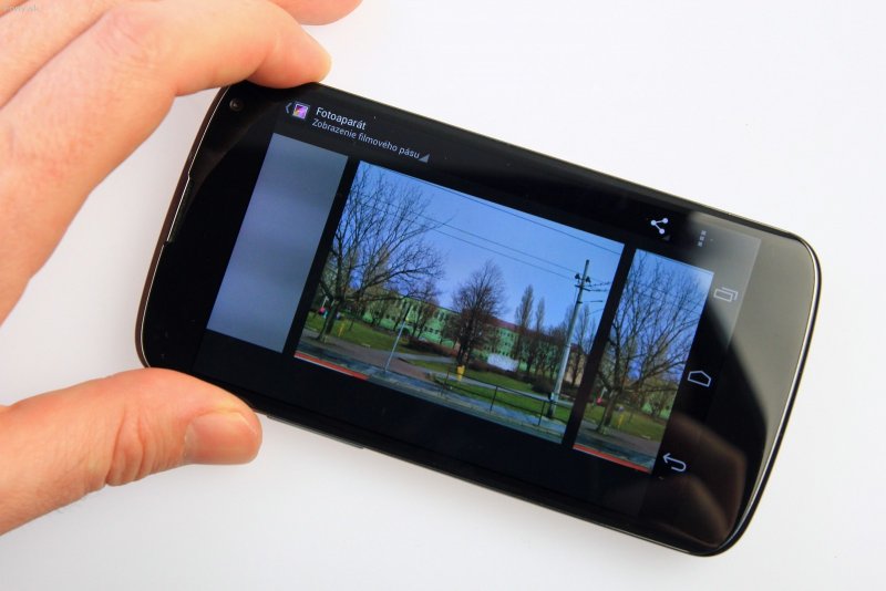Prostredie fotoaparátu vás možno najprv zaskočí chudobnou ponukou nastavení. Nebojte sa, sú tu, a dokonca veľmi pohodlne dostupné. Dotykom prsta v hociktorej časti obrazovky sa zobrazí kruhová ponuka nastavení a jednoduchým potiahnutím sa dostanete k danej funkcií. Len jedným ťahom si tak nastavíte napríklad konkrétnu hodnotu expozície, zapnete blesk alebo vyváženie bielej. Ďalej tu nájdete HDR, ktorá nás veľmi milo prekvapilo a funguje presne tak, ako sa na dobré HDR patrí. Veď posúďte sami. HDR a ďalšie fotografie nájdete už tradične v našej Galérií. Kvalitu fotografií sme porovnávali so Samsungom Galaxy Note 2. A ten nakoniec tento súboj aj vyhral. Farby boli prirodzenejšie a detaily ostrejšie. Nexus 4 sa však medzi high-endmi nestratí a dovolím si tvrdiť, že väčšina používateľov bude spokojná. Zaujímavou novinkou medzi režimami je snímanie 360-stupňovej panorámy. Napríklad na vrchole zjazdovky bude takýto záber určite pôsobivý. Na kvalite prepojenia jednotlivých fotografií sa však musí ešte popracovať. Výrazných defektov prepojenia je na výslednej panoráme viac než dosť. Inak je kvalita snímok na dobrej úrovní a pri prezeraní môžete v panoráme zoomovať. Panorámu vo svojej plnej kráse otvoríte pomocou telefónu alebo napríklad v službe Google+. K nasnímaným fotografiám sa dostanete z prostredia fotoaparátu potiahnutím po obrazovke sprava doľava. Dostávame sa k ďalším funkciám. A to som si pri prvom spustení myslel, že pôjde o funkčne chudobný fotoaparát. Fotografie si môžete hneď upraviť, k dispozícií je deväť filtrov, jedenásť rámov, orezanie fotografie a ďalšie nastavenia, medzi ktorými nájdete aj krivky. Pri možnostiach nahrávania videa sa opäť stretávame s časozberným záznamom. Stačí len dobrý statív, dostatok času a napríklad peknú prírodnú scenériu. Nexus 4 nahráva videa v maximálnom Full HD rozlíšení a počas prehrávania automaticky preostruje.