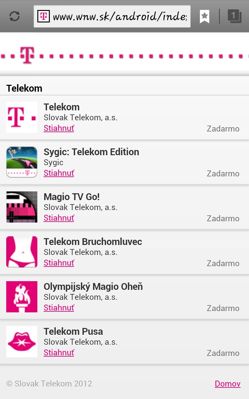 Pre zariadenia s operačným systémom Android je v Google Play k dispozícii softvér s jednoduchým názvom Telekom. Aplikácia však slúži iba ako ikonka na displej s rýchlym prístupom na stránku m.telekom.sk.