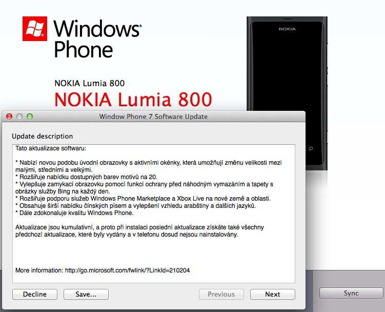 Dostupnosť si môžete skontrolovať kliknutím na "Device Options" a následne na "Check for Update" (platí pre softvér na MAC) a postupovať podľa pokynov na obrazovke. Pred samotnou inštaláciou WP 7.8 bude pravdepodobne nutné najskôr nainštalovať dva menšie updaty, ktorý telefón na veľkú aktualizáciu pripraví. Redakčnú Lumiu 800 sme tak aktualizovali na WP 7.8 až na tretíkrát. Aj keď po inštalácii nového softvéru ostanú všetky veci vo vašom telefóne na svojom mieste a nič sa nevymaže, pre istotu odporúčame obsah smartfónu pred aktualizáciou zálohovať. Na to vás ale upozorní samotný počítačový softvér.