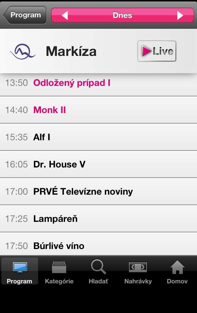 Nechýba ani funkcia Park&Play, ktorá umožňuje pridanie záložky na neskoršie dopozeranie programu aj na inom zariadení.