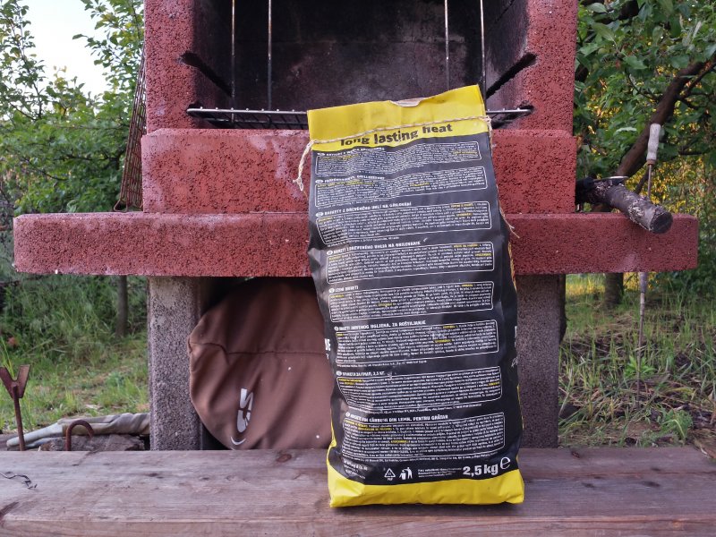 HDR záber na grilovacie brikety odhaľuje o trochu viac detailov a lepšie čitateľné písmo na 8 Mpix snímke z Galaxy S4 (vpravo).