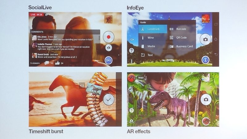 Z krátkeho zoznámenia môžeme potvrdiť, že vďaka nemu Xperia Z1 pôsobí omnoho robustnejším a hodnotnejším dojmom ako jej predchodkyňa. Hlavným lákadlom však bude pravdepodobne 20,7 Mpix fotoaparát. Ten prináša štvoricu špeciálnych režimov, napríklad on-line streamovanie nahrávaného videa priamo na váš profil na Facebooku cez Social Live, funkciu Timeshift, pri ktorej telefón konštantne ukladá snímky v burst režime ešte predtým, než stlačíte spúšť, alebo zábavné Augmented Reality efekty, pridávajúce objekty do vašich fotografií. InfoEye by malo dokázať rozpoznávať odfotografovaný text, nasnímané pamiatky, knihy a iné objekty podobne, ako to dokáže napríklad Google Goggles. Oceňujeme taktiež to, že 3,5 mm jack pre slúchadlá už nie je neprakticky schovaný pod ochrannou krytkou.
