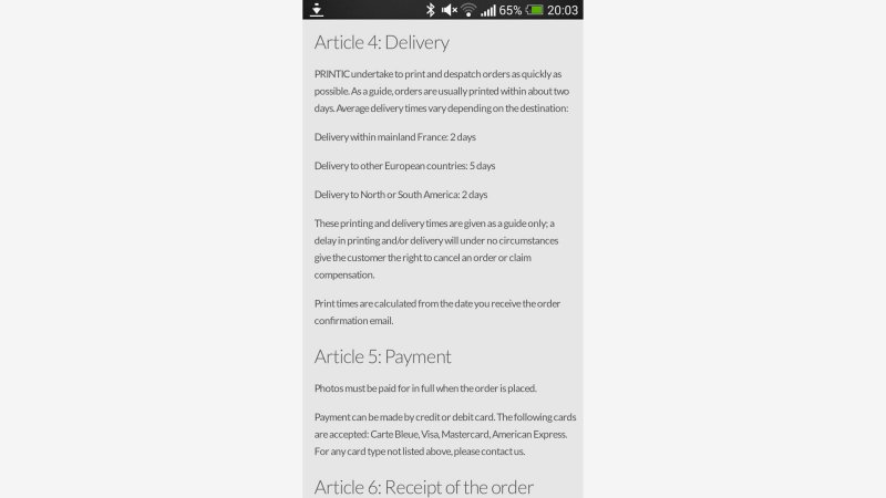 Tretím, najpodstatnejším benefitom, je zaslanie obálky s minimálne tromi fotografiami na akúkoľvek adresu v Európe, Južnej alebo Severnej Amerike. Zásielky sú odosielané z Francúzska, pričom k nám na slovenskú dedinu prišli do dvoch dní od odoslania, tri pracovné dni od objednania.