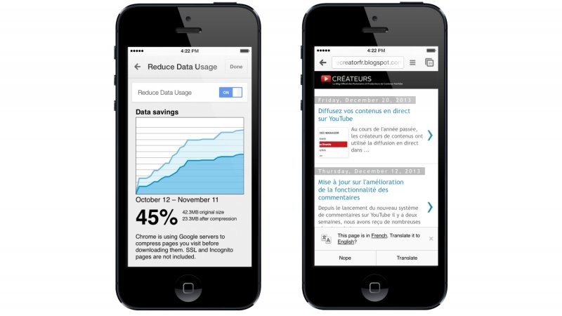 Funkcia tak kopíruje napríklad populárnu Operu Mini. Google tvrdí, že takto možno ušetriť až 50 % zo štandardne preneseného množstva dát. Priamo v prehliadači je možné sledovať graf, ktorý porovnáva pôvodnú a komprimovanú veľkosť a informuje používateľa, aký veľký objem dát ušetril.
