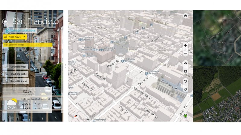 Bolo tiež potvrdené, že mapy Here od Nokie budú v novej verzii dostupné pre všetky notebooky, PC a tablety s desktopovými(!) Windows 8.1. Budú rýchlejšie, s lepším rozlíšením podkladov a podporou synchronizácie medzi PC a mobilným zariadením. Na ich ovládanie bude možné používať dotykovú obrazovku ale aj klávesnicu a myš.