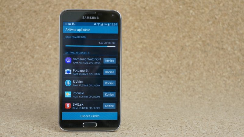 Poriadnu dávku výkonu sprostredkuje výkonný chipset od Snapdragonu so štvorjadrovým procesorom taktovaným na 2,5 GHz a grafickým procesorom Adreno 330, ktorý si hravo poradí aj s náročnými hrami. Napriek výkonnému hardvéru sa Samsung Galaxy S5 ani pri dlhšom používaní neprehrieval. Mierne zvýšenú teplotu som zaregistroval iba pri dlhšom hraní hry Gangstar 4. Veľkosť RAM-ky sa oproti predchodcovi nezmenila. Dva gigabajty určite postačia, no napríklad minuloročný Galaxy Note 3 ponúka až 3 GB. Z 2 GB je k dispozícií 1,82 GB a hodnota využívanej kapacity sa pohybovala okolo 1,5 GB. Viacero spustených aplikácií a prostredie spravia svoje. Interný priestor s kapacitou 16 GB sa už v najnovších high-endoch príliš nenosí. Tu to však zachraňuje slot na microSD kartu, ktorý si poradí s až 128 GB pamäťovkou. Pochválim aj možnosť presunúť si aplikácie na pamäťovku.