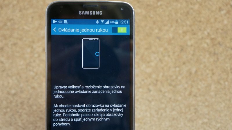 Pomocou prehmatávania sa dá veľký displej skrotiť aj pomocou jednej ruky. Lenže sú momenty, kedy je prehmatávanie nepohodlné alebo riskantné. V týchto situáciách prichádza ako na zavolanie režim Ovládanie jednou rukou. Potiahnutím od okraja displeja do stredu a naspäť sa zmenší veľkosť celého prostredia a ovládanie jednou rukou je bezproblémové. Vykonaním tohto gesta z pravého okraja sa zmenšené prostredie presunie viac doprava a naopak. Na obrazovke sa zobrazuje aj trojica tlačidiel pod displejom a tlačidlá ovládania hlasitosti.