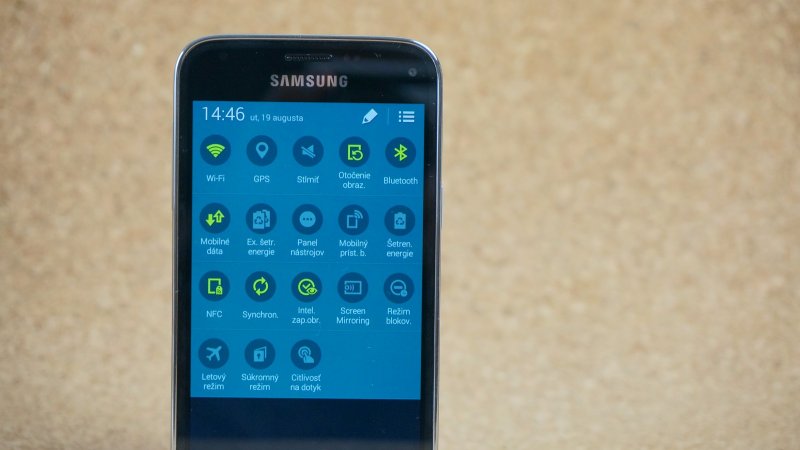 Horná lišta sa prispôsobila novej grafike, s ktorou prišiel model Galaxy S5. Funkčne je všetko po starom. Pribudla sem funkcia S Finder, teda fulltextové vyhľadávanie kontaktov, aplikácií a všetkého možného. Rýchle pripojenie zase ponúka ľahšie zdieľanie obsahu s okolitými zariadeniami. Pravdu povediac, nič z toho mi v mojom predchádzajúcom mobile nechýbalo a len mi to v hornej lište prekáža. Naopak, vítam opätovné použitie stupnice pre reguláciu jasu s možnosťou manuálne doladiť automatické nastavenie jasu (napríklad na hodnotu Auto +5).