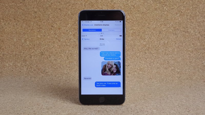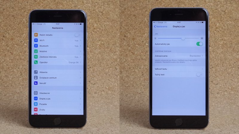 Mimochodom, displej - 5,5” ultrajemné Full HD rozlíšenie, prakticky neexistujúca medzera medzi panelom a sklom či príkladné pozorovacie uhly. Len tie farby… Nemôžem si pomôcť, ikony na základnej obrazovke či fotografie podľa mňa vyzerajú lepšie na 5S. Rovnaké nastavenie jasu (ktorého maximálna a minimálna hodnota sa nezmenili), a vždy radšej hlasujem za menší model. Samozrejme, situácia sa diametrálne otočí v internetovom prehliadači, kde je pozadie na vlaňajšom zariadení viac do žlta a vďaka jemnosti zobrazenia 326 ppi oproti 401 ppi (s Full HD) nemá 5S šancu. Papierové hodnoty ale udávajú kontrasný pomer 1300:1 pri iPhone 6 Plus a len 800:1 pri iPhone 5S. Sú to však len čísla, displej iPhonu 5S je v niektorých okamihoch paradoxne subjektívne príjemnejší (teplejší).