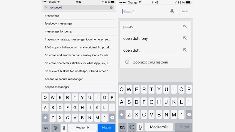 Kompromisy však robil aj Apple, konečne vám napríklad dovolí inštaláciu inej klávesnice z App Store, pokiaľ by vám nevyhovovala napríklad bodka či čiarka alebo čísla schované až v nižších ponukách tej natívnej. iPhone 6 Plus navyše prináša ďalšie možnosti pri otočení na šírku. Tu už okrem spomínaných interpunkčných znakov nájdeme aj samostatné klávesy copy, paste atď. pre kopírovanie a prácu s textom. Príkladne funguje aj hlasové diktovanie. V slovenčine, aj s diakritikou.
