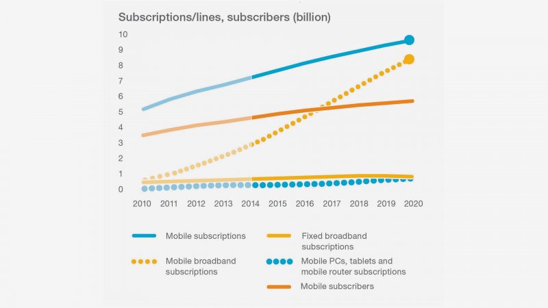 Ericsson Mobility Report odhaduje, že v ďalších rokoch vzrastie počet zákazníkov mobilných operátorov so smartfónmi z dnešných 2,7 miliárd na 6,1 miliárd v roku 2020.